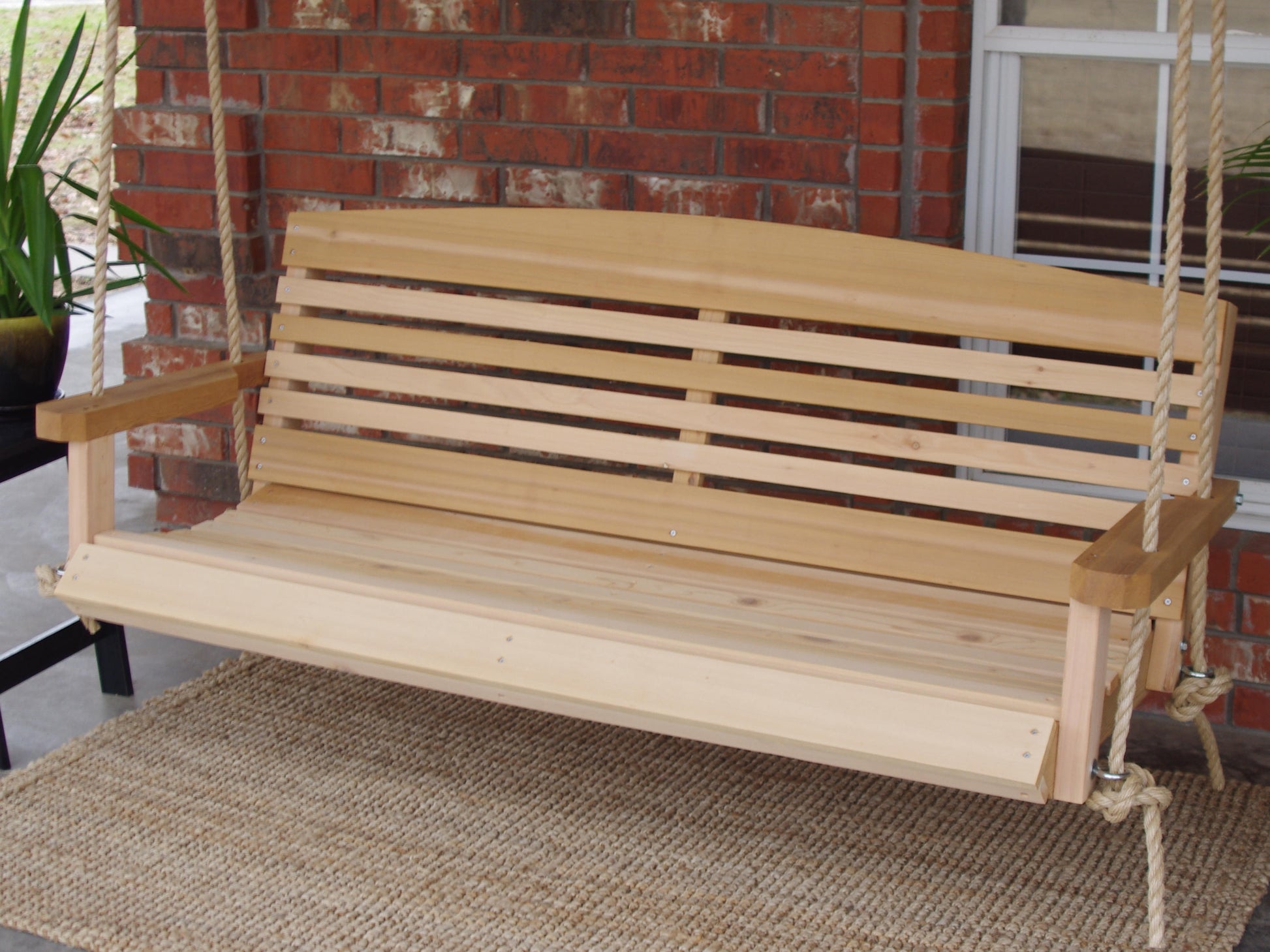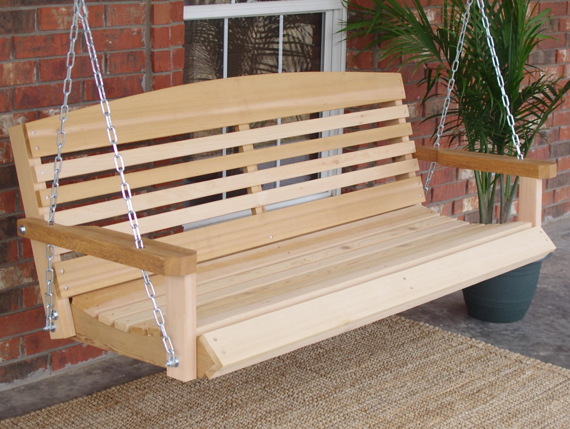 Our American Ceder Porch Swing features a contoured seat for superior comfort, the seat slats roll all the way around the bottom giving your swing a unique look.