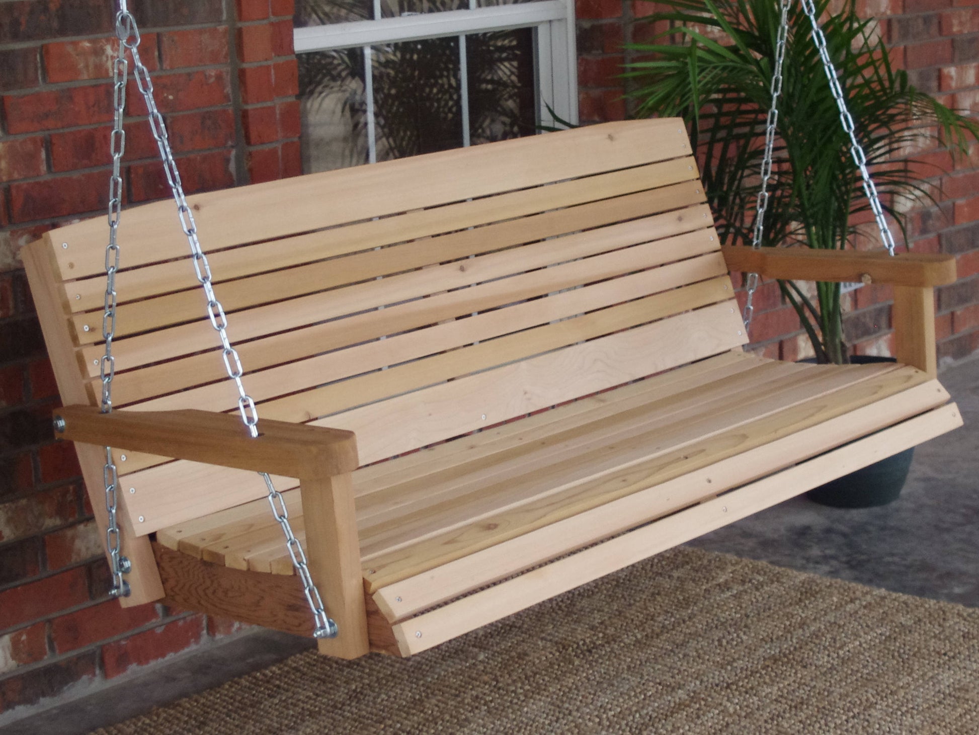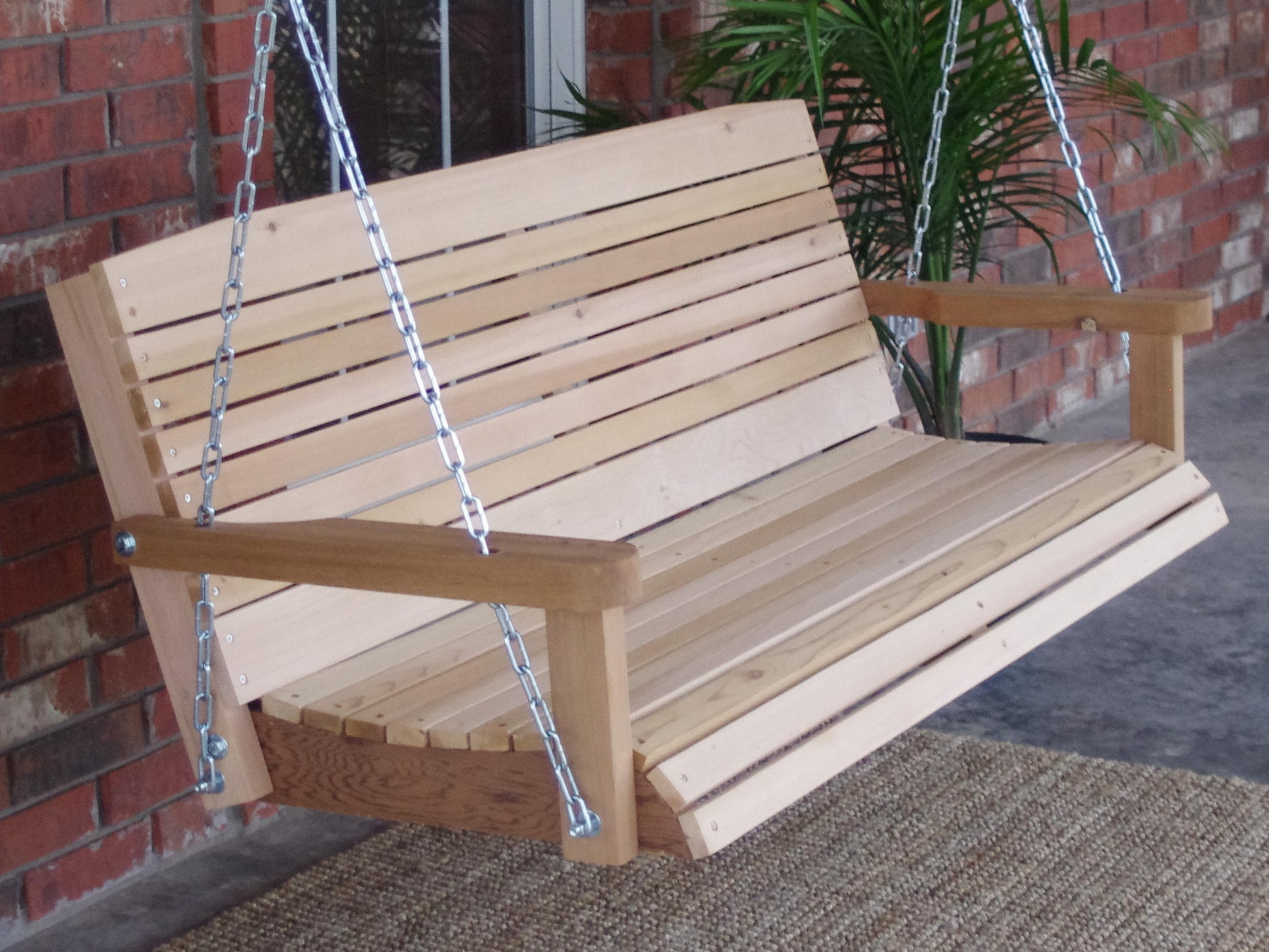 Cedar has beautiful color and ages well to give years of service from your porch swing. Hang it from any porch, deck or tree to create that special spot to kick back and enjoy your yard or garden. This swing is made from 100% western red cedar wood and solidly built. The seat is made from with 1x2 slats on a 2x4 frame, while the back is made from 1x4 and 1x2 boards on a 2x3 frame for plenty of support, years of service and great looks. If you would like to have this swing built in a custom size just email us for a quote.