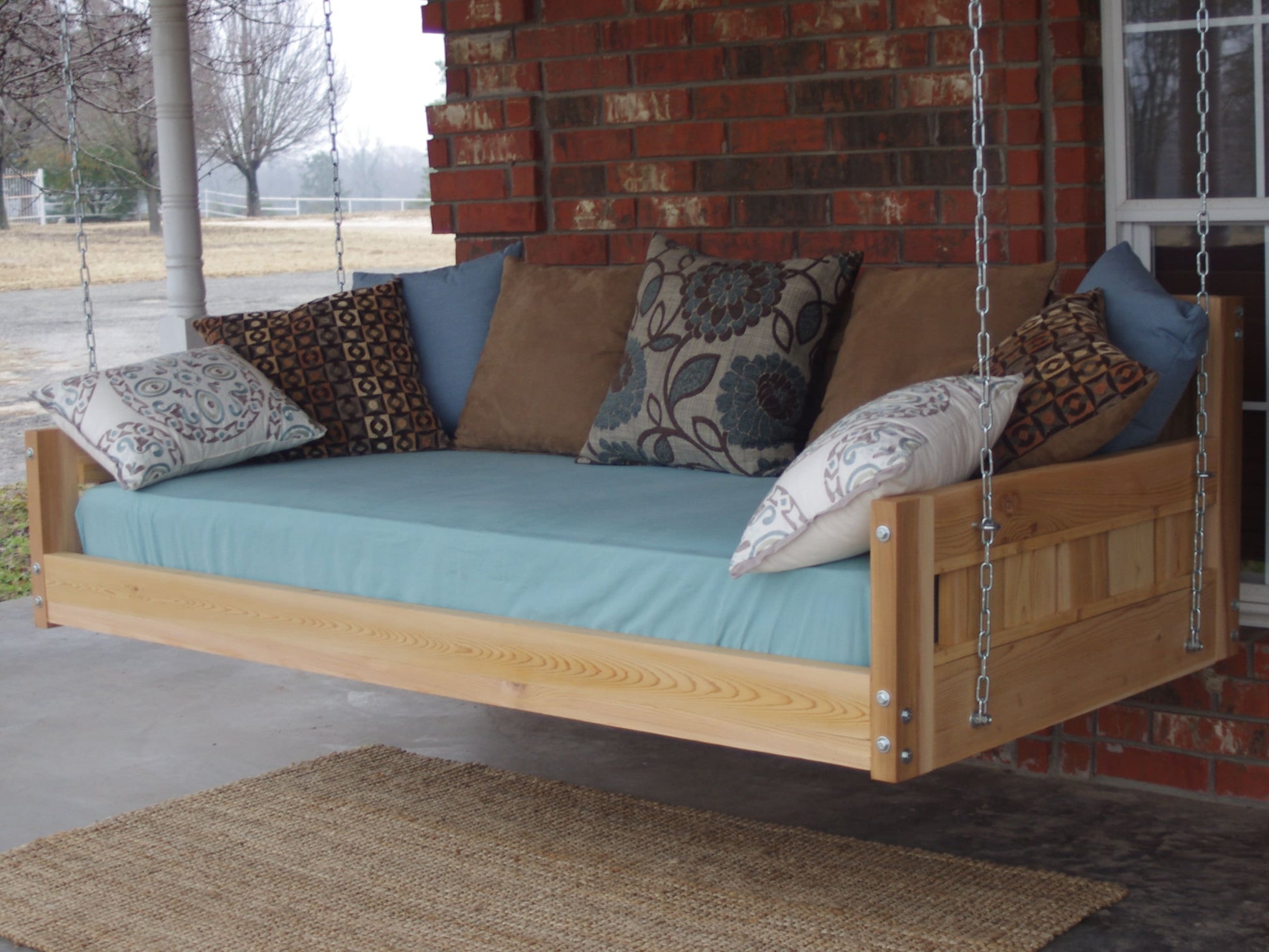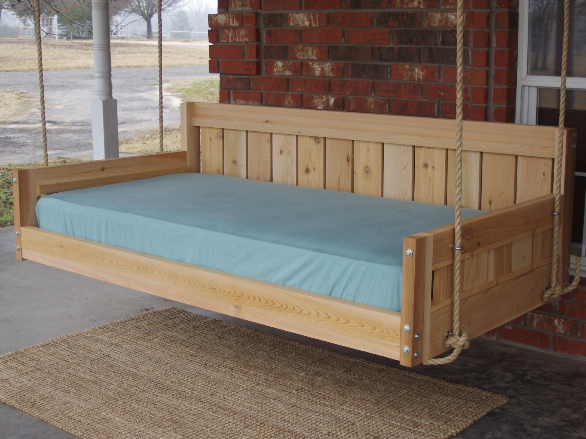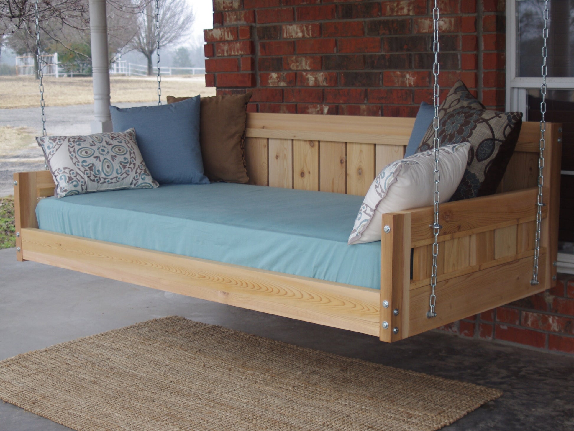 The Country Style Cedar Swinging Daybed comes in four different sizes to accommodate different sized mattress. Enjoy hours of lounging around, reading, napping or anything you can imagine in this wonderful daybed. Please look at the pictures for exact details. Mattress, pillows and linens are not included.