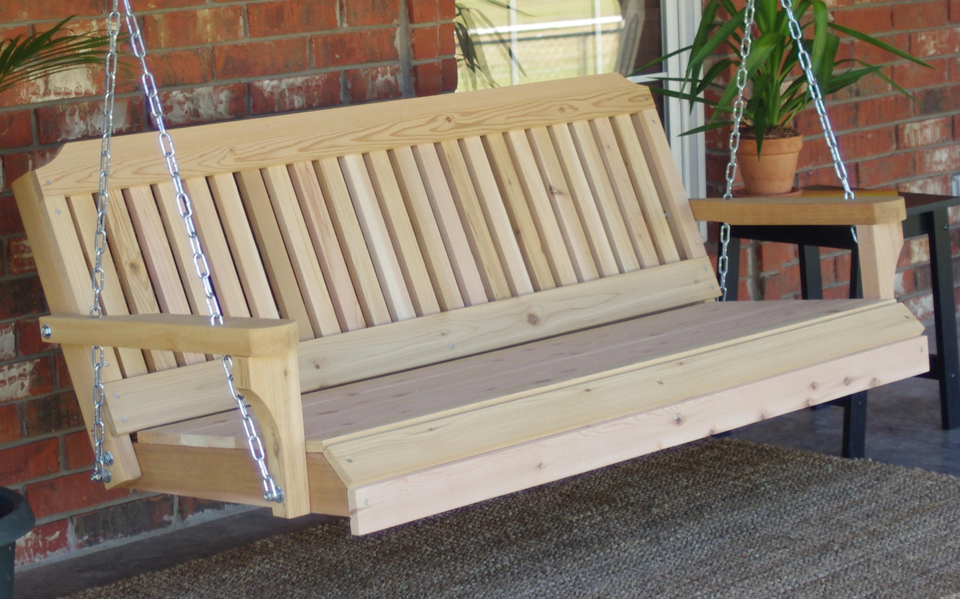 The Traditional Cedar Porch swing is designed to never go out of style. The seat is solid and comfortable and the traditional-style back adds a touch of class.