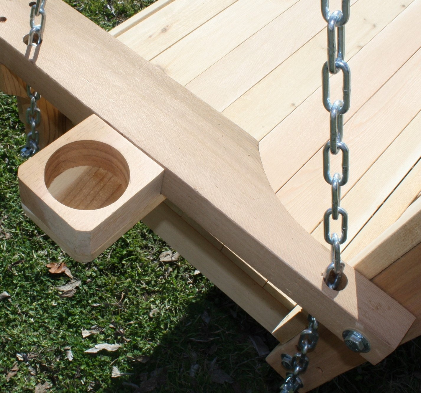 Cedar has beautiful color and ages well to give years of service from your porch swing. Hang it from any porch, deck or tree to create that special spot to kick back and enjoy your yard or garden. This swing is made from 100% western red cedar wood and solidly built with 1x3 slats on a 2x4 frame for plenty of support, years of service and great looks.