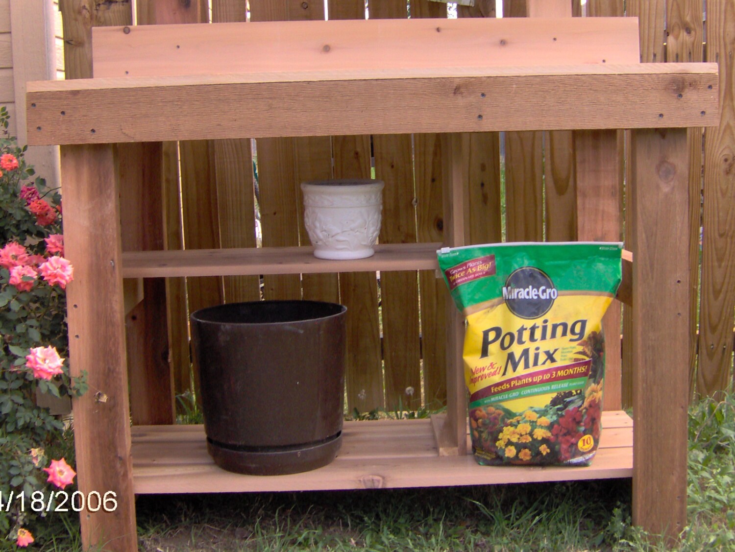The bench features a spacious working area and a large upper shelf for plenty of storage. The large soil grate allows excess soil to drop into a storage container (not included). Features splash plate, large upper shelf, large shelving area under the bench and an additional lower storage shelf.