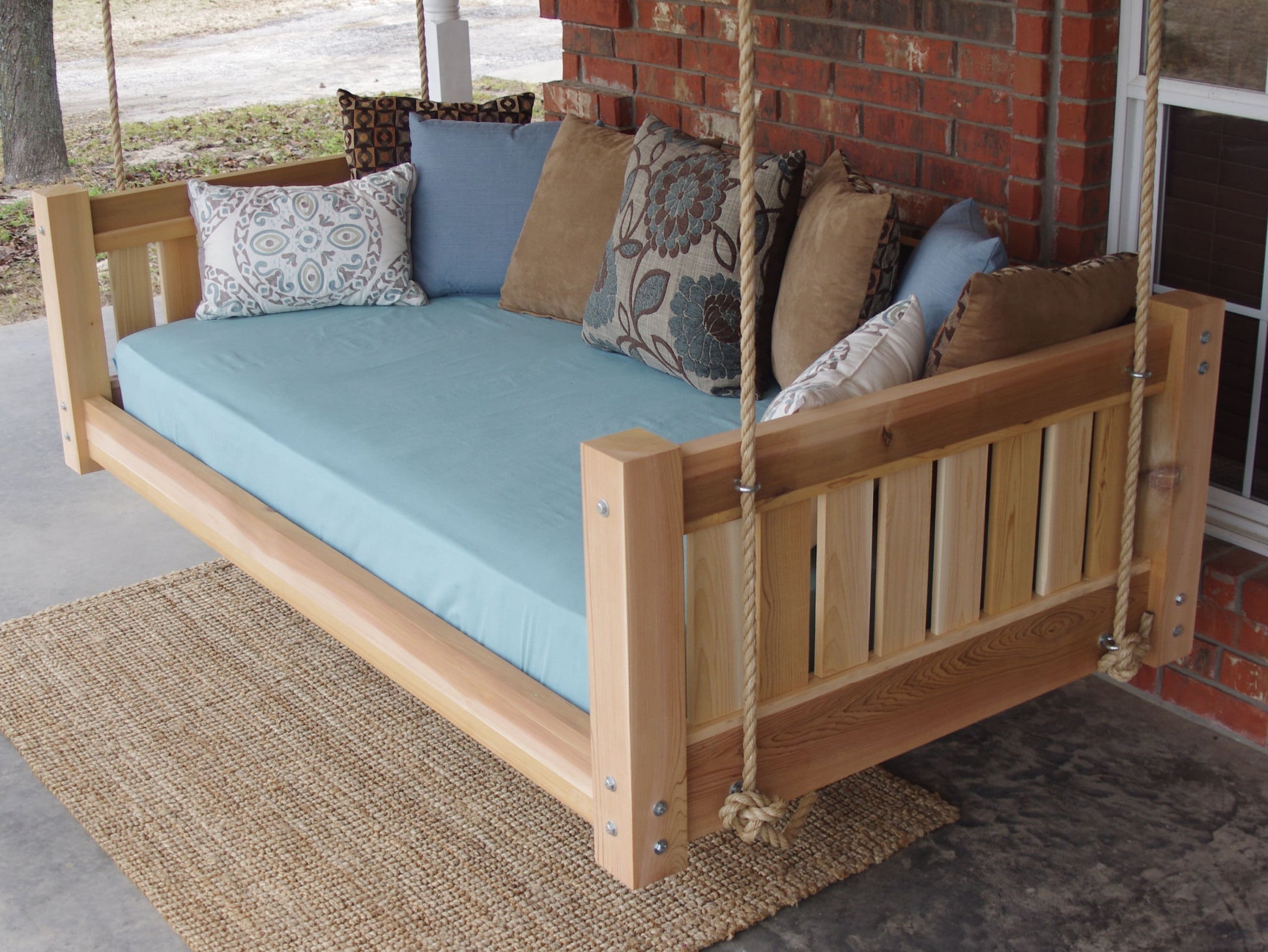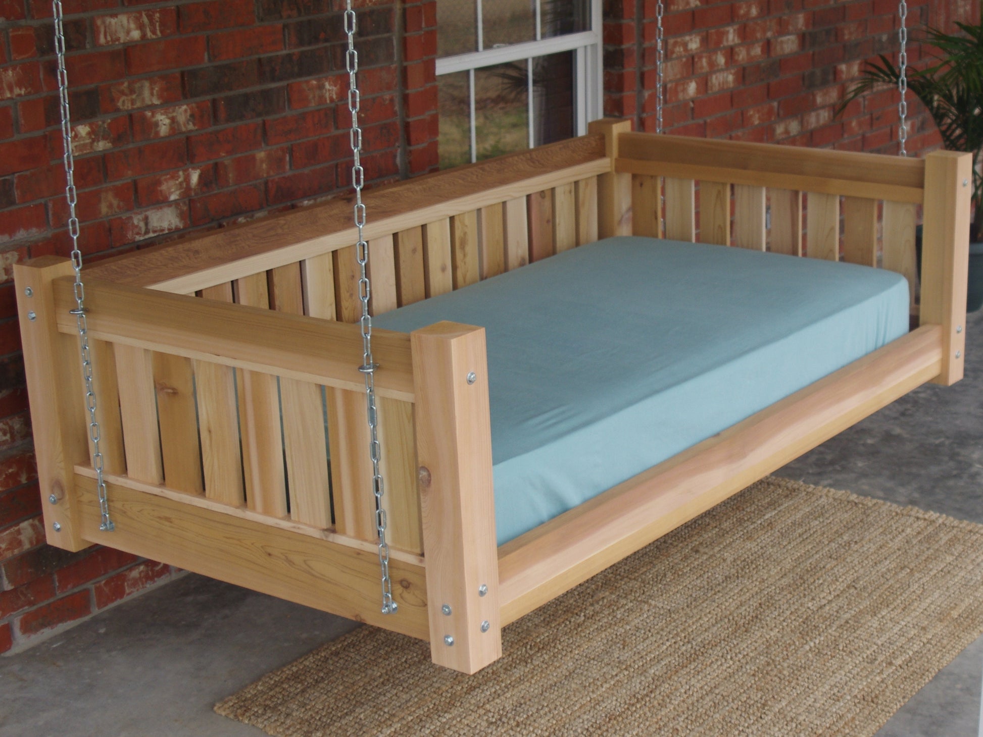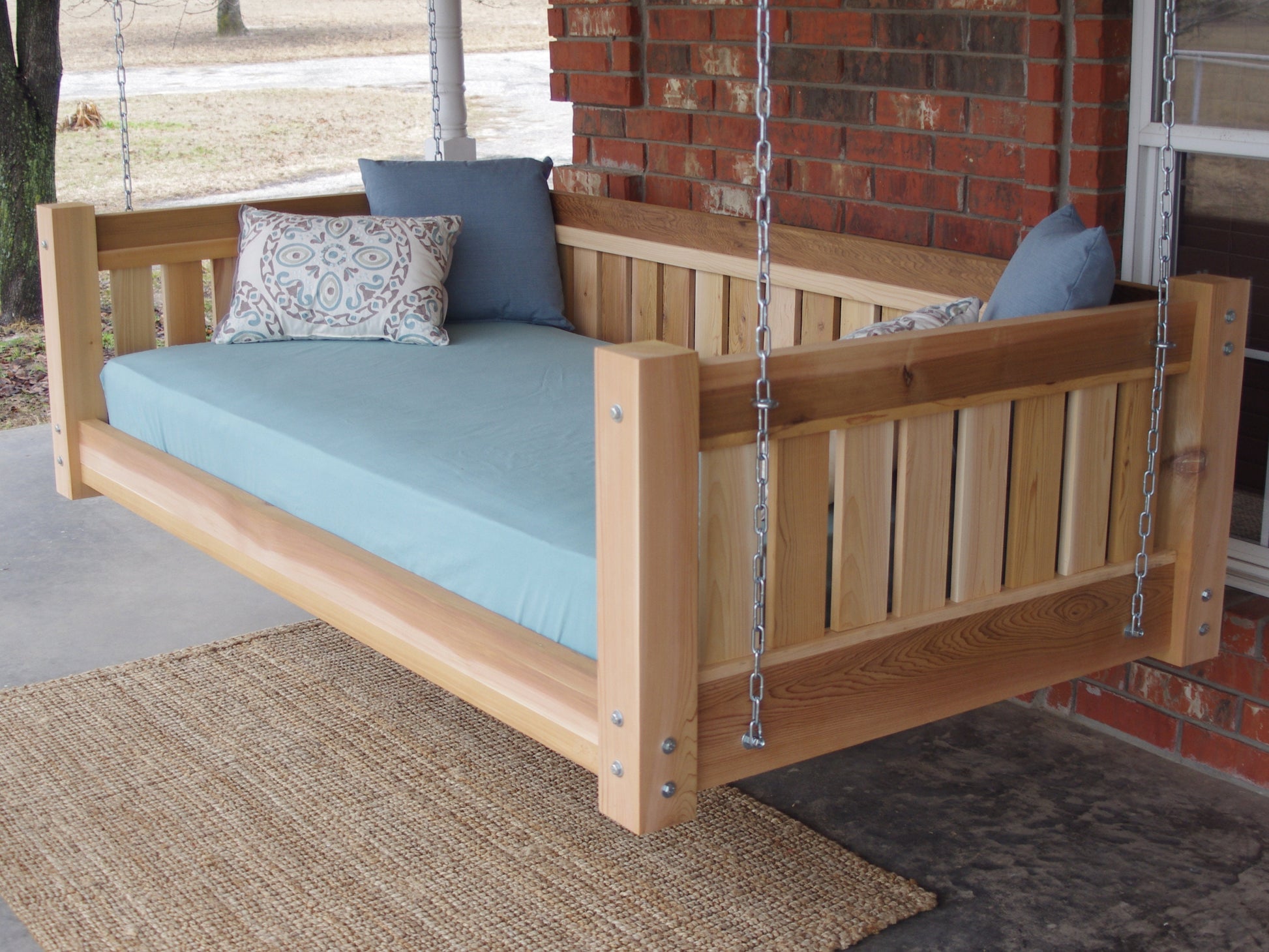 The Victorian Style Cedar Swinging Daybed comes in four different sizes to accommodate different sized mattress. Enjoy hours of lounging around, reading, napping or anything you can imagine in this wonderful daybed. Please look at the pictures for exact details. Mattress, pillows and linens are not included.