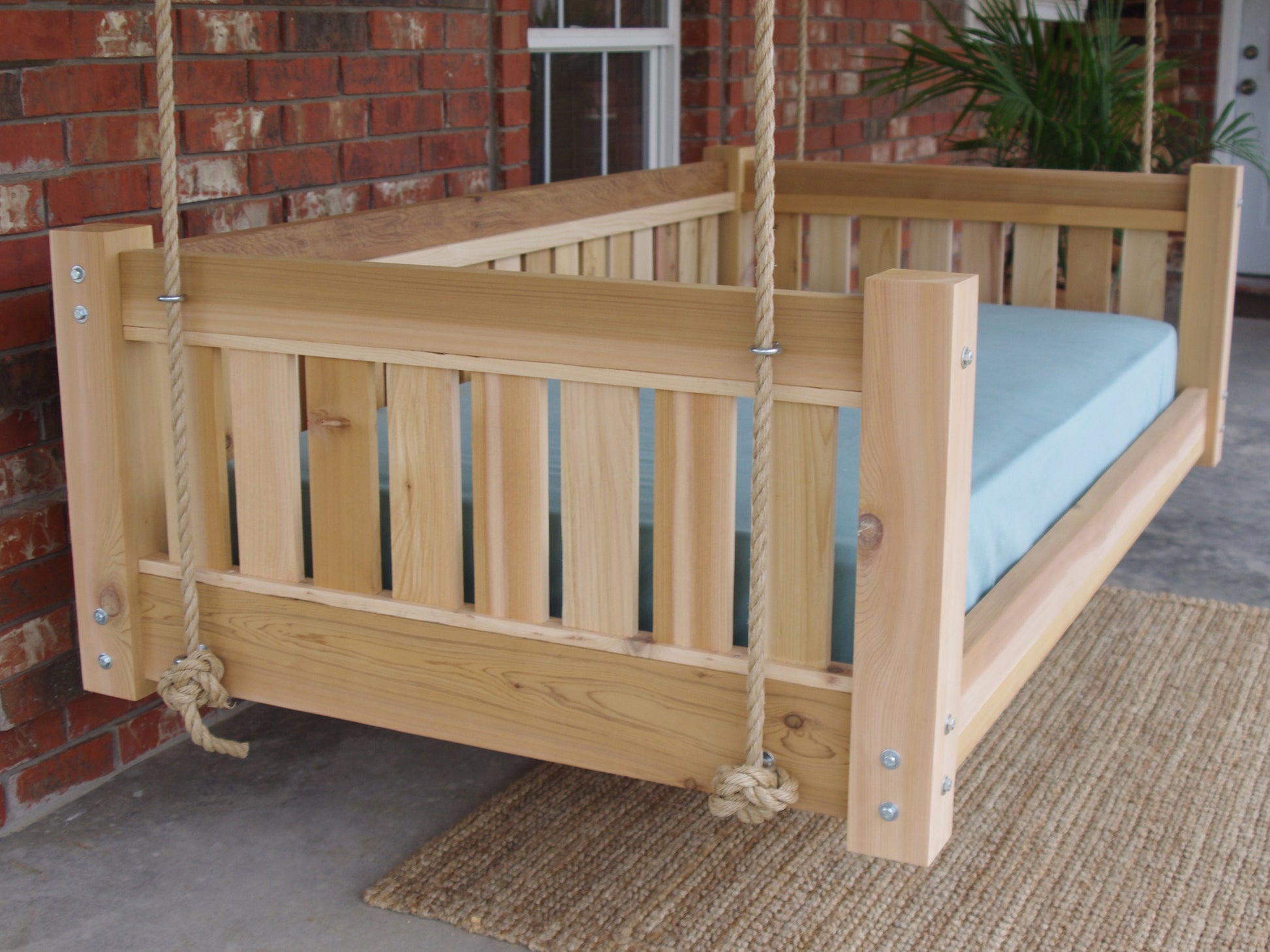 This great bed swing is made from 100% western red cedar wood and solidly built with slats on a 2x4, 2x6 and 4x4 solid frame for plenty of support, years of service and good looks. Cedar has beautiful color and ages well to give years of service from your porch swing. If you would like to have this swing built in a custom size just email us for a quote.