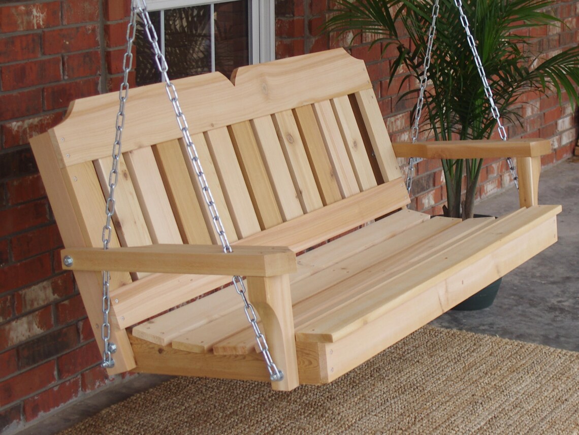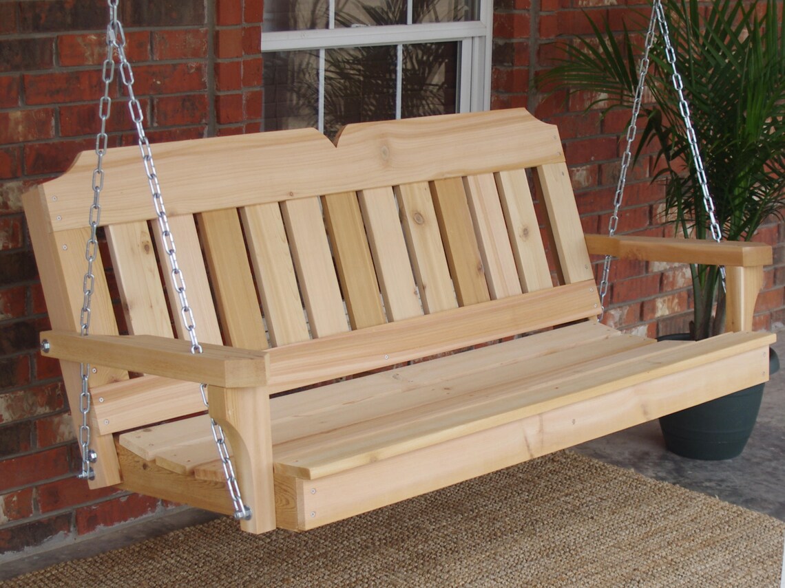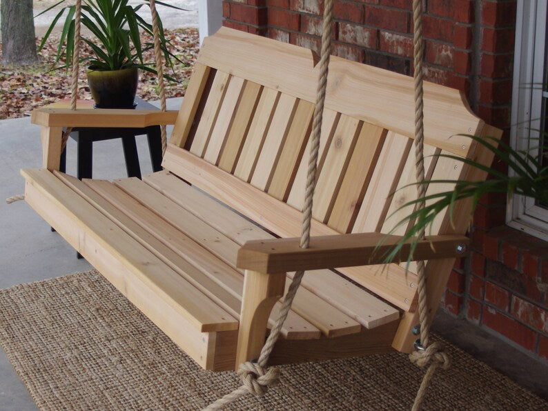 Cedar has beautiful color and ages well to give years of service from your porch swing. Hang it from any porch, deck or tree to create that special spot to kick back and enjoy your yard or garden. Built from 100% western red cedar wood and solidly constructed for plenty of support, years of service and great looks.